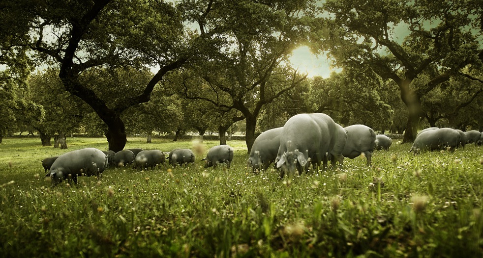 広大な自然の中で自由に育てられたイベリコ豚は、ほとんどストレスのかからない環境下で育ちます。